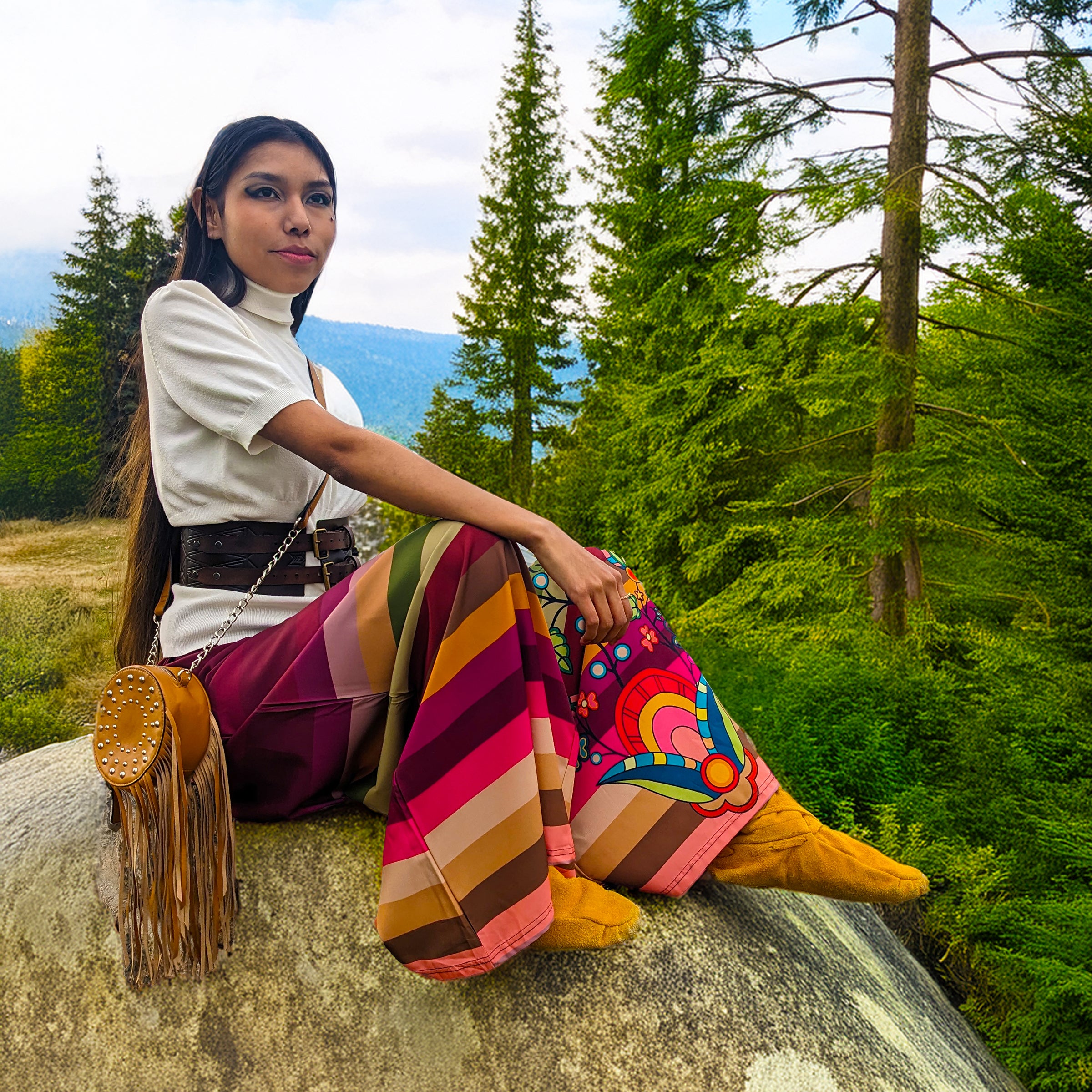 Celebrate tradition with a modern twist. Our Ribbon Pants honor the cultural significance of the traditional ribbon skirt while reimagining it for contemporary wear. Featuring a stunning fall color palette with rich hues like ochre, maroon, olive, and pumpkin, these pants are adorned with unique geometric and floral designs that reflect the beauty of the season.